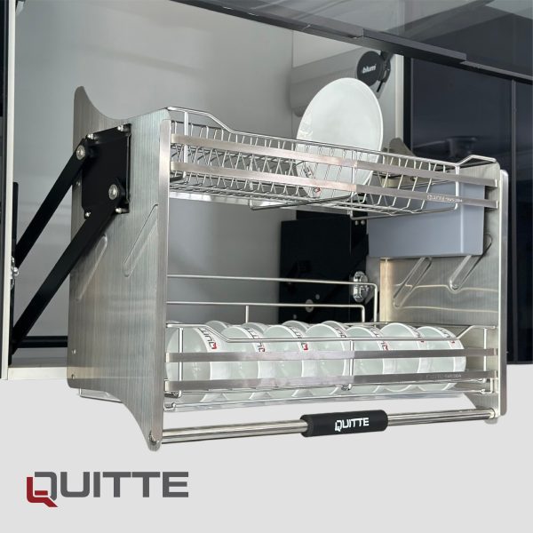 Kệ đựng giá bát đĩa nâng hạ, thiết kế giá bát bên dưới, giá đĩa bên trên